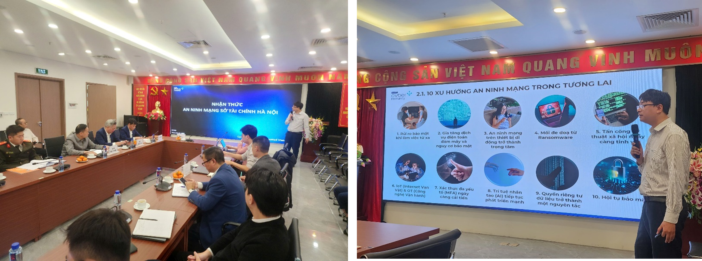 Tại buổi diễn tập, chuyên gia an ninh mạng của Trung tâm An toàn thông tin, Tập đoàn VNPT đã trao đổi, chia sẻ về tình hình an toàn thông tin trên thế giới và tại Việt Nam, thông tin về xu hướng an toàn thông tin, các rủi ro tấn công mạng, các mối đe dọa và các nhân tố chính trong an toàn thông tin tới cán bộ, công chức, viên chức, người lao động thuộc Sở; đồng thời điều hành, tổ chức diễn tập ứng cứu sự cố Ransomware theo kịch bản để các đội thi ứng cứu sự cố an toàn thông tin thực hiện diễn tập, thực hiện ứng cứu theo các tình huống, các pha thực hiện từ công tác tiếp nhận các thông tin liên quan đến sự cố, thu thập thông tin phục vụ công tác điều tra, xác minh, xử lý xự cố; phân tích, xác định giả mạo; trích xuất mã độc, thiết lập môi trường… đến công tác lập phương án cách ly và khôi phục hệ thống và báo cáo hoàn thành.