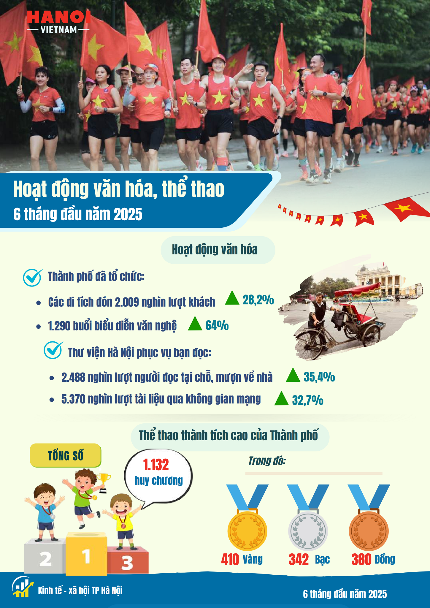 Thống kê bằng hình ảnh kinh tế - xã hội 6 tháng đầu năm 2025 của thành phố Hà Nội Thứ 6, 04/07/2025 | lượt xem: 1273 Thống kê bằng hình ảnh kinh tế - xã hội 6 tháng đầu năm 2025 của thành phố Hà Nội Tải tại đây